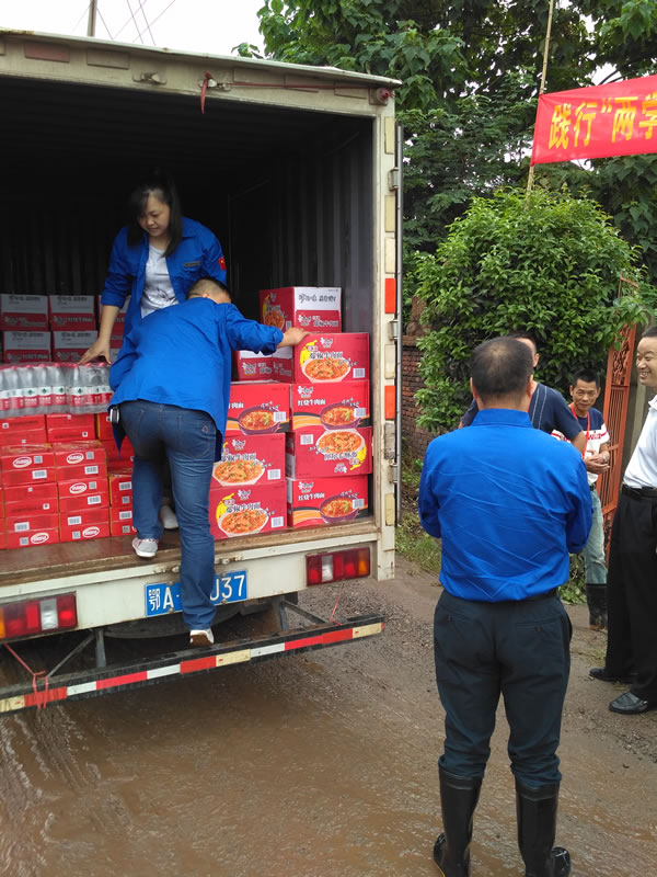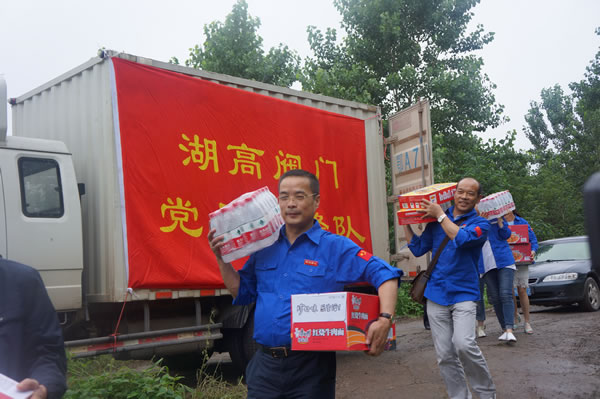 2016年7月5日上午,湖北高中壓閥門有限責任公司董事長兼黨委書記陶宏國、總經理陶力帶領公司部分共產黨員,到抗洪一線慰問救災人員和受災群眾。他們帶著2萬余元的礦泉水、方便面等其他物資,頂著大雨,行走在泥濘的田間小道上,深入到陽邏魏家湖、鄢家湖、陶家大湖等重點抗災現場,向奮戰在救災一線的指戰員們送去誠摯的敬意和親切的慰問。