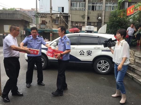 2016年7月7日上午,“武漢好人”陶宏國,親自到倒水河陽邏金臺段大堤上,慰問抗洪一線人員,了解防汛具體情況和實際需求,并帶領相關人員到新洲區交通大隊陽邏中隊,慰問那些在大風暴雨中不辭辛苦、日夜堅守在工作崗位的人民警察。