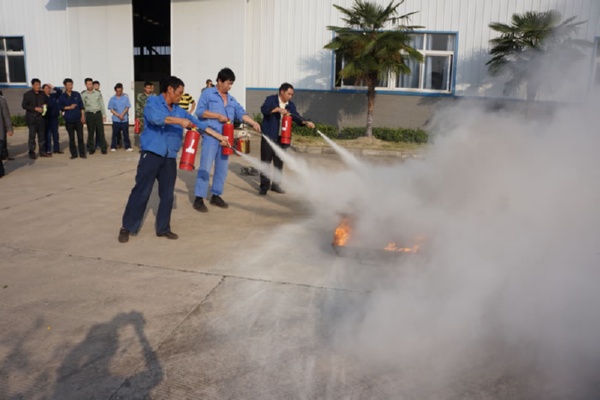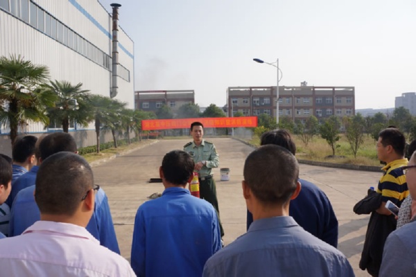 逃身演練完成后,所有人員到公司院內空地,在事先預備“火災”現場,首先由消防中隊教官,具體講解了滅火器的使用方法、滅火的注意事項和撲火的操作步驟,然后由消防戰士作操作示范,最后開始實戰演練,點燃事先準備好的油棉紗,現場燃起大火及濃煙,由本次演練總指揮(公司副總經理、安委會副主任)隨即啟動消防滅火救援預案,按照預案要求進入實戰狀態,指揮參加演練的義務消防隊員,拿起滅火器具,遵照操作要領和步驟,火勢很快被壓住并撲滅,隨后仔細進行全方位檢查,撲滅暗火、余火。除消防安全知識培訓時間外,整個演習時間約65分鐘左右。